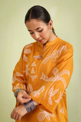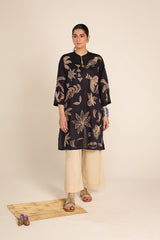 A straight-fit embroidered kurta featuring a band collar with a V-slit and button details. Delicate crafted motifs add a whimsical touch, blending tradition with playful artistry. Can be paired with any Generation fit for a versatile and effortless look.
