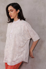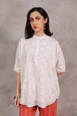 An embroidered top featuring a band neckline and buttoned front placket. Can be paired with any Generation bottom.