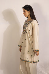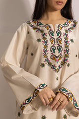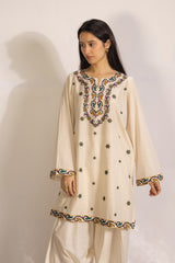Classic fit embroidered kurti with a round neckline with a V-slit, adorned with vibrant border details. Style it with your preferred Generation bottoms.