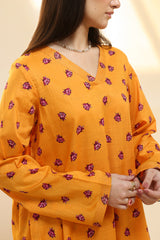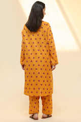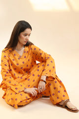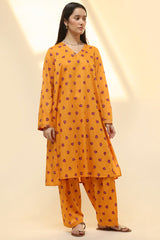 Printed paneled relaxed-fit shirt with a V-neckline, finished with stitching details along the neckline and sleeve hems. Paired with a matching printed classic-fit shalwar.