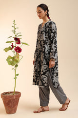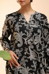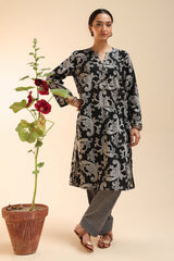 Classic-fit printed shirt designed with subtle button embellishments and delicate stitched detailing along the placket and sleeve hems. Styled with coordinated printed classic-fit shalwar.