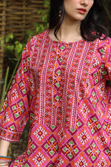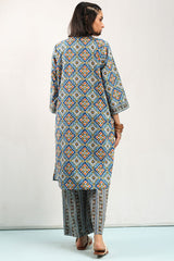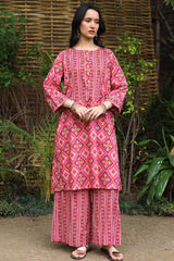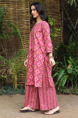 Classic-fit printed shirt with a round neckline and a buttoned front placket. Paired with coordinated printed culottes.