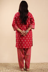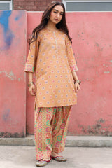 Classic-fit printed shirt with a low band neckline and a buttoned front placket. Paired with a coordinated printed classic-fit shalwar.