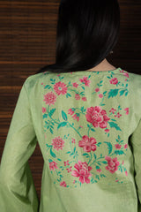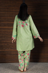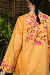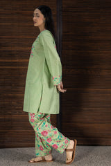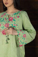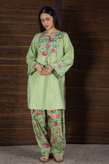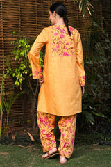Classic-fit paneled printed shirt with a round neckline and V-slit, adorned with tassel detailing. Paired with a coordinated printed classic-fit shalwar.