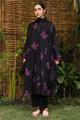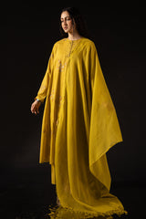 Embroidered classic-fit paneled kurta with a round neckline, featuring subtle pleat detailing and loop buttons along the front slit. Finished with lace along the sleeve hems. Paired with coordinated culottes. Comes with an inner for added comfort and ease, and styled with a dupatta finished with knotted tassel detailing.