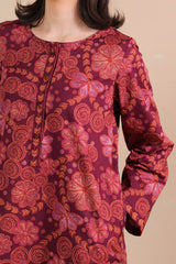A printed straight-fit shirt with a round neckline and buttoned front placket. Side pockets add functionality and ease. Paired with complemented printed culottes.