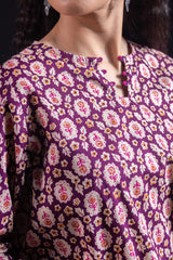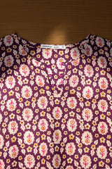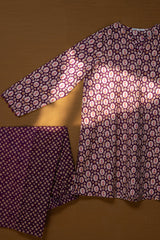 A classic-fit printed shirt with a round neckline and V-slit, detailed with loop accents along the slit and sleeve hems. Paired with printed culottes, this coordinated set blends comfort with effortless style.