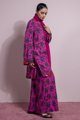 Leaf printed classic-fits shirt with a round neckline and V-slit, adorned with tassel detailing. Paired with matching printed classic culottes.