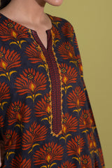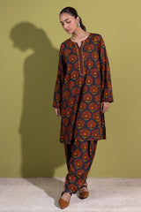 A classic-fit printed shirt with a round neckline and V-slit. Paired with a matching printed classic-fit shalwar for a coordinated, elegant look.