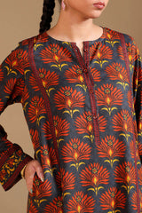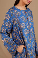 A classic-fit printed shirt with a round neckline and buttoned front placket. Side pockets for ease and functionality. Paired with matching printed culottes for a coordinated look.