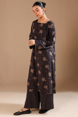 Classic-fit printed shirt with a square neckline, adorned with gota lace detailing along the neckline and sleeve hems. Paired with matching printed culottes for a look that blends tradition with modern ease.