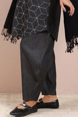 An embroidered shirt with a low band neckline and V-slit, adorned with delicate all-over stitching pattern. Finished with cuffed sleeves and a round shirt hem, paired with a classic-fit shalwar for an chic look.