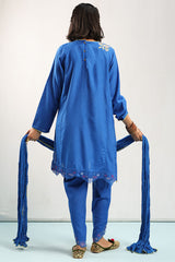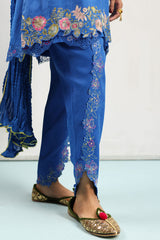Embroidered classic-fit paneled shirt with a round neckline, adorned with lace along the neckline and sleeve hems. Enhanced with embroidered detailing and net accents along the shirt borders, and finished with a buttoned placket at the back. Paired with an embroidered classic-fit tulip shalwar and styled with a crinkled dupatta featuring lace detailing.