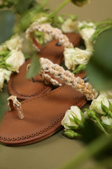 Premium leather chappals crafted with a smooth tan base and braided straps for a refined appeal. Designed with a sturdy sole and clean finish, offering durability, comfort and everyday style.