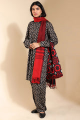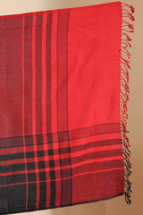A richly woven yarn-dyed Jacquard shawl, adorned with vibrant geometric patterns that bring warmth and bold elegance to every look.