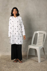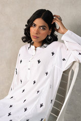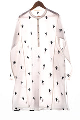 A classic paneled kurta, where a band neckline meets a buttoned placket, adorned with delicate hand-embroidered cactus whispers, echoing the poetry of the desert. Can be paired  effortlessly with any Generation bottom.