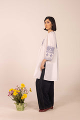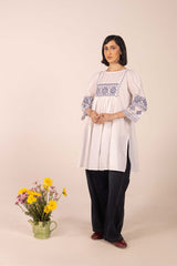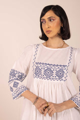 A criss-cross stitched kurta featuring a round neckline, with delicate stitch detailing on the bodice, sleeves, and back. Gathers around the empire waist create a flattering flared silhouette. Pairs effortlessly with any Generation fit for a timeless look.