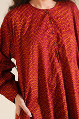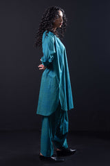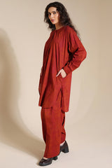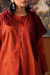 Printed in deep tones, this classic-fit shirt features a round neckline with buttons along the front placket. Designed with cuffed sleeves and side pockets for ease. Paired with a matching printed classic-fit shalwar.