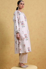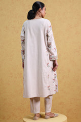 Embroidered paneled classic-fit shirt with a round neckline adorned with crochet detailing. Paired with straight-fit trousers.