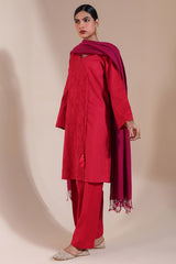Embroidered classic-fit angrakha-style shirt adorned with delicate tassel detailing, finished with crochet lace along the neckline and sleeve hems. Paired with a classic-fit shalwar for a cohesive look.