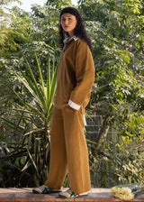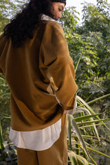 Relaxed-fit buttoned sweatshirt featuring a laid-back silhouette with drop shoulders and wide sleeves. Styled with straight-fit sweatpants featuring side pockets for an easy, comfortable everyday look.