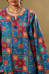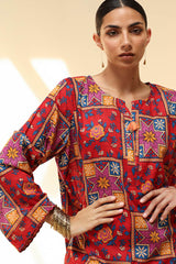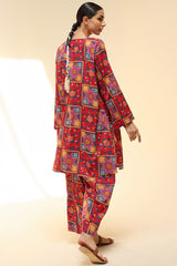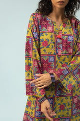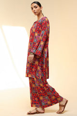 Classic-fit printed shirt with a round neckline with a V-slit, adorned with delicate tassel detailing. Paired with matching printed culottes.