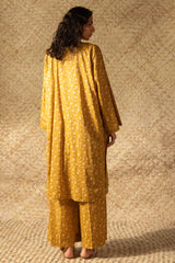 Printed classic-fit shirt with a round neckline and V-slit, adorned with delicate embroidered detailing. Paired with matching printed culottes.
