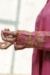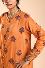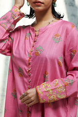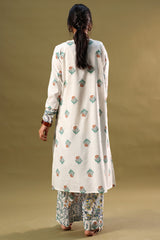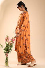 Classic-fit printed shirt with a round neckline and loop buttons along the front slit and a subtle front opening. Soft cuffed sleeves with button detailing complete the look. Paired with coordinated printed culottes.