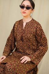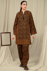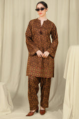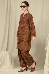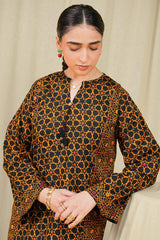 A classic-fit vibrant printed shirt with a round neckline and V-slit, adorned with tassel detailing. Paired with a printed classic-fit shalwar.