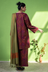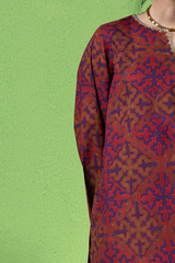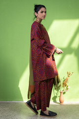 Printed classic-fit shirt with a round neckline and V-slit, adorned with delicate embroidered details on the neckline and sleeve hems. Paired with matching printed culottes for a coordinated look.