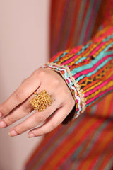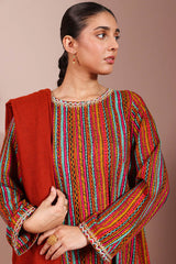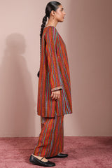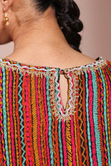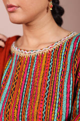 Classic-fit printed shirt with a round neckline at the front and a keyhole neckline at the back, adorned with delicate embroidered detailing on the neckline and sleeve hems. Paired with matching printed culottes.