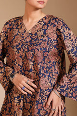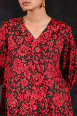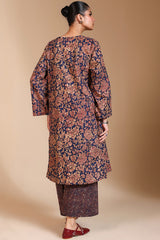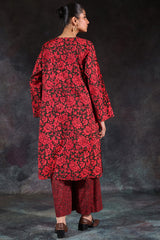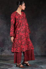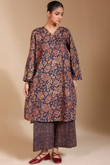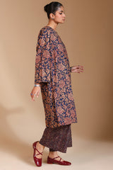 Blooming floral printed classic-fit shirt with a V-neckline and subtle mukaish detailing along the front slit. Paired with classic printed culottes for a graceful, coordinated look.
