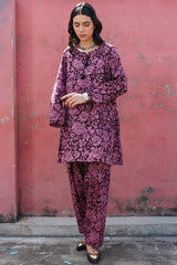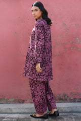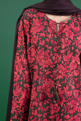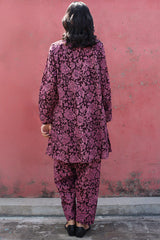 A classic-fit floral A-line printed shirt with a round neckline and a V-slit, adorned with tassel detailing for a playful touch. Paired with matching printed classic-fit shalwar for a coordinated look.