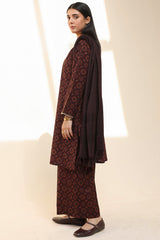 Classic-fit printed shirt with a round neckline and V-slit, adorned with delicate embroidered detailing on the neckline and sleeve hems. Paired with matching printed culottes.
