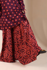 Classic-fit printed shirt with a round neckline and loop buttons along the front slit. Paired with a complementary printed gharara for a classic look.