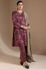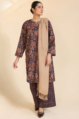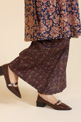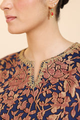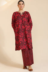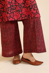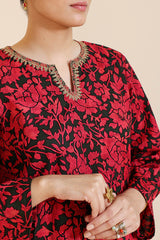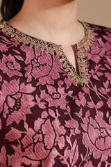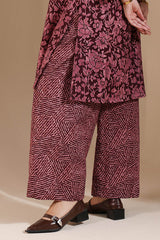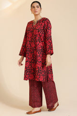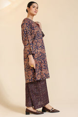 Classic-fit printed shirt with a round neckline and V-slit adorned with delicate embroidered detailing. Paired with complementary printed culottes.