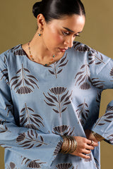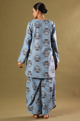 Classic-fit printed shirt with a round neckline and relaxed sleeves. Paired with matching printed culottes.