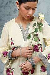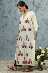 Printed relaxed-fit shirt with a round neckline and V-slit, finished with subtle contrast detailing. Designed in a playful print for a refined yet statement look.