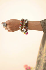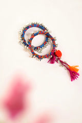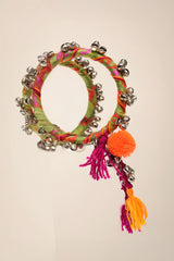 A full, detailed aesthetic bangle pair adorned with colorful ribbons, enhanced with tassel detailing and delicate tiny bells for a traditional charm.