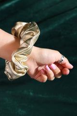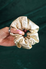 A soft leather style scrunchie that adds a sleek, refined touch to everyday hairstyles.