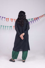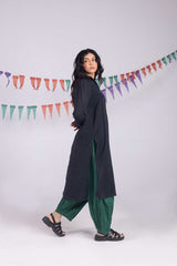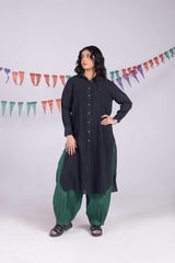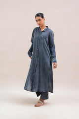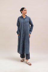 A textured long shirt featuring a collared neckline with buttons along the front slit. Cuffed sleeves add structure, while a front pocket and pleat detail at the back ensure an easy silhouette. Can be paired with any Generation bottoms for a versatile look.