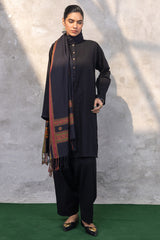 Classic paneled kurta with a round neckline and buttons along the front placket. Paired with a classic khula poncha shalwar and a jacquard dupatta finished with twisted thread fringes along the edges.