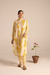 A loose-fit desi floral bloom printed kurta with a band neckline and buttoned front placket. Adorned with soft floral motifs, it features cuffed sleeves and convenient side pockets. Pairs effortlessly with any Generation fit for a sophisticated look.