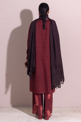 A classic-fit gold-printed shirt featuring a round neckline and loop buttons along the front slit and sleeve slits. Paired with gold-paisley printed culottes.