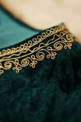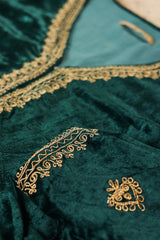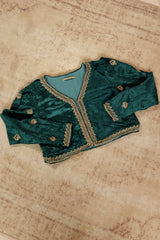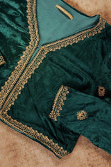 Embroidered classic-fit front-open short velvet koti adored with golden embroidered detailing. Can be styled with Generation outfits.