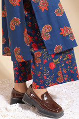 A paisley-printed classic-fit shirt with a round neckline and V-slit, adorned with delicate mukaish work. Paired with printed culottes for a coordinated contemporary finish.