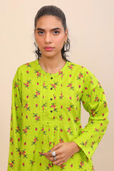Printed short top with pleats and button details.