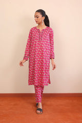 Printed, straight fit shirt with side pockets, paired with straight fit pants.
