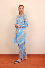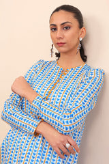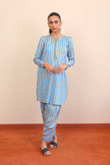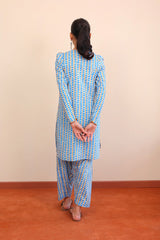Puff sleeves shirt with button loops on neckline and paired with matching classic fit shalwar.