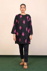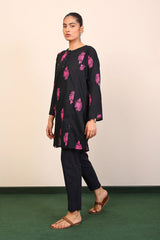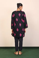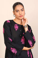 Panelled medium length kurta with embroidery motifs and buttons on placket.>br>